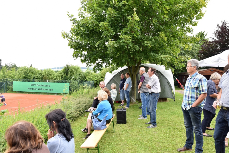 „DANKE“, sagte MTV Tennis-Spartenvorstand Karl-Heinz Steinwedel mehrfach vor rund 150 Tennisfreunden und Gästen. Am 24.06.17 hatte die Tennissparte zum Feiern eingeladen, 25 Jahre wird in Bodenburg Tennis gespielt. Dieses „DANKE“ richtete Steinwedel an alle ehrenamtlichen Mitglieder der Sparte des MTV. Einige hiervon sind noch heute im Vorstand aktiv, also 25 Jahre dabei.