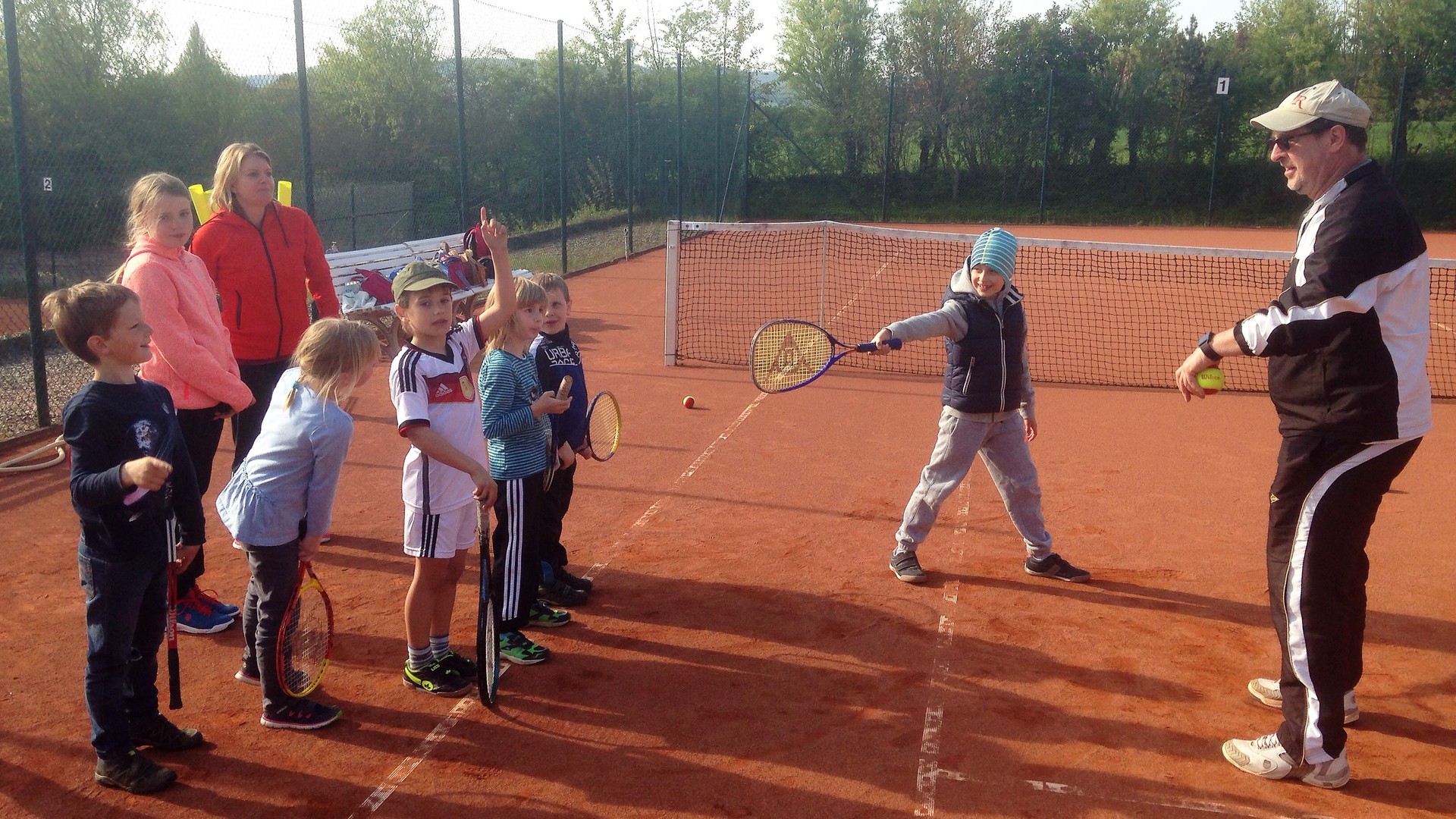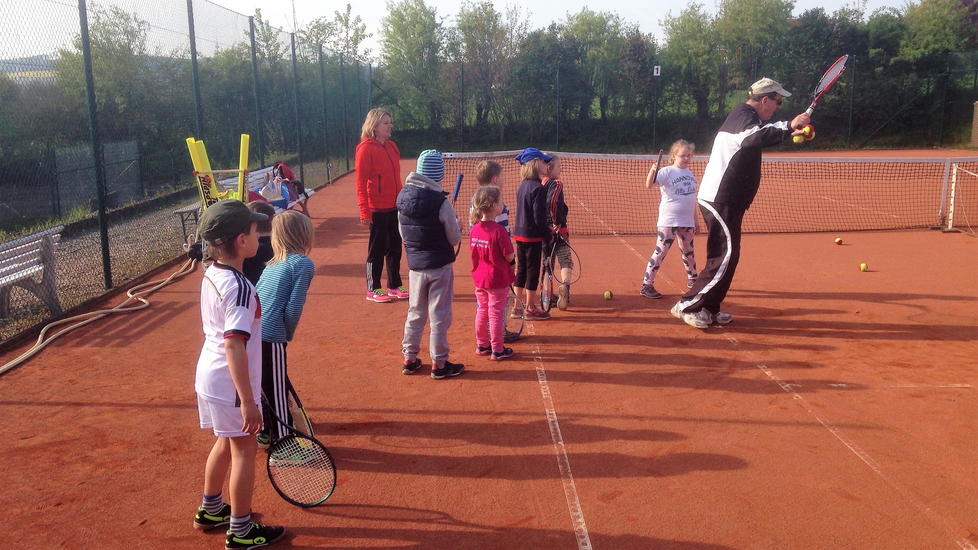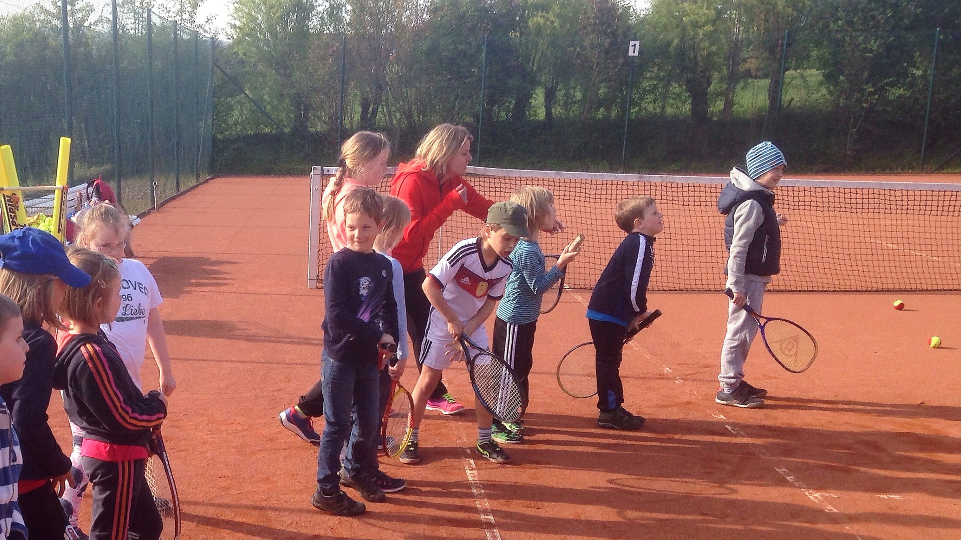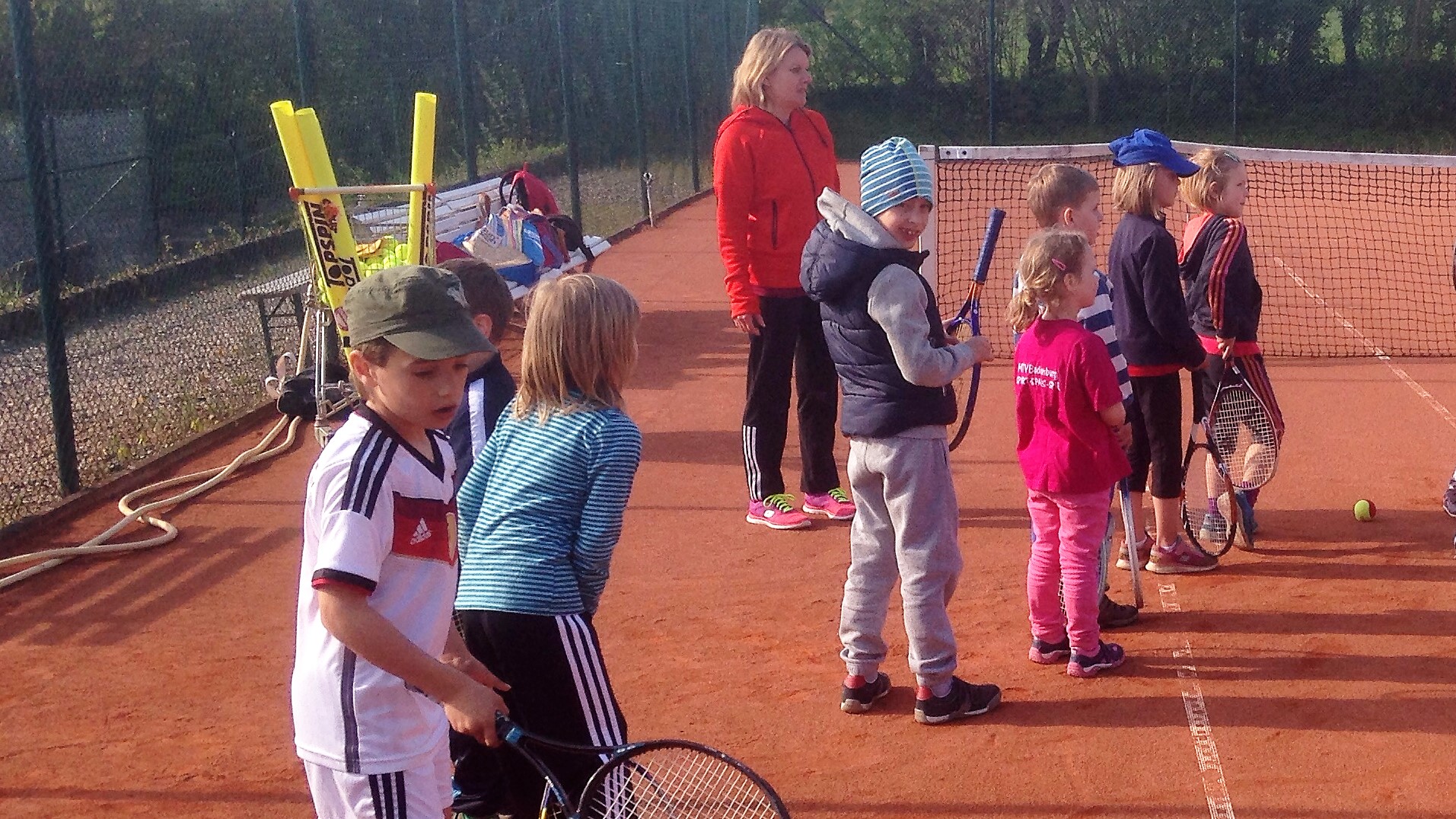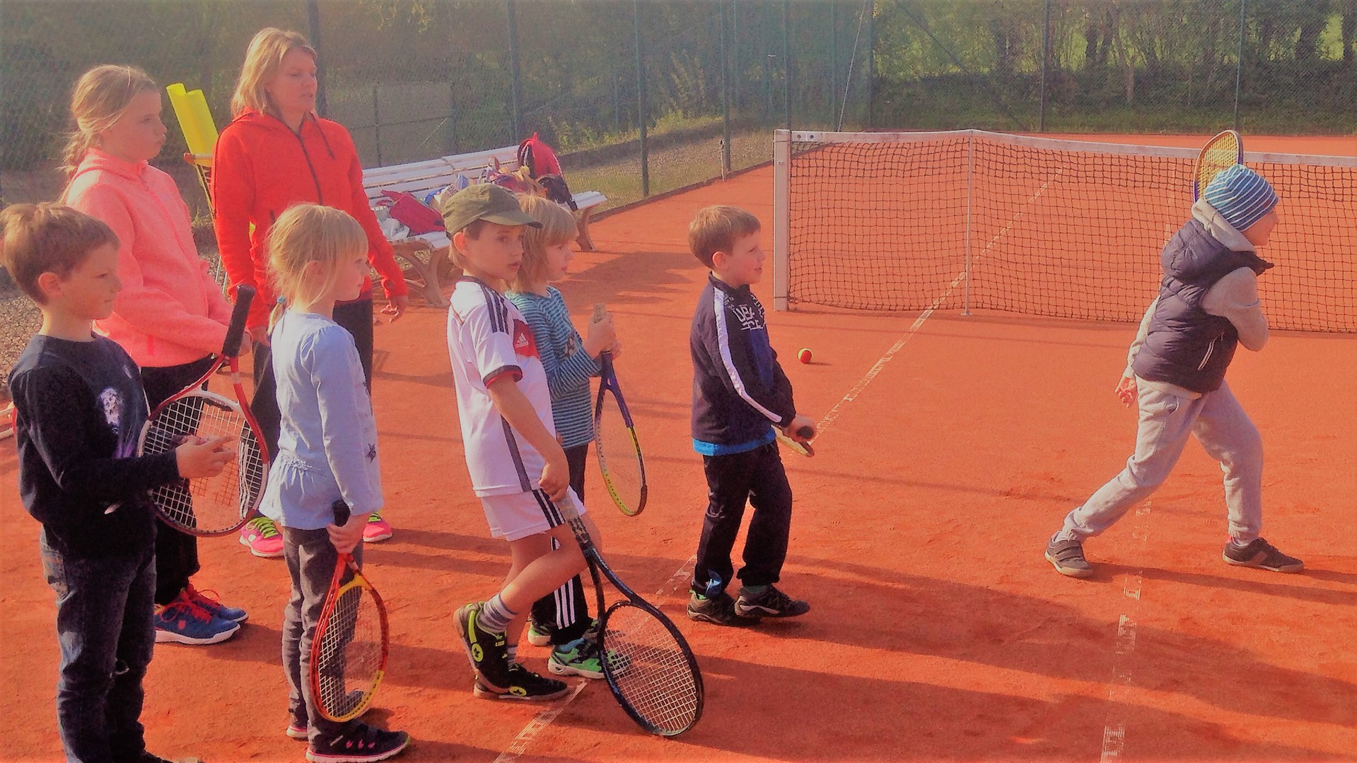 Mit so vielen Kids haben wir kaum gerechnet: Dietlind Emmel und Ulrike Rohr organisierten den heutigen Tag. Mama und Papa begleiteten ihre Sprößlinge auf den Tennisplatz. Ab dem 4. Lebensjahr waren die Kinder mit Begeisterung dabei. Trainer Bernd mit Helferin Ulrike und Fenja Rohr zeigten spielerisch die nötigen Bewegungsabläufe, sodass der Tennisball getroffen wird.