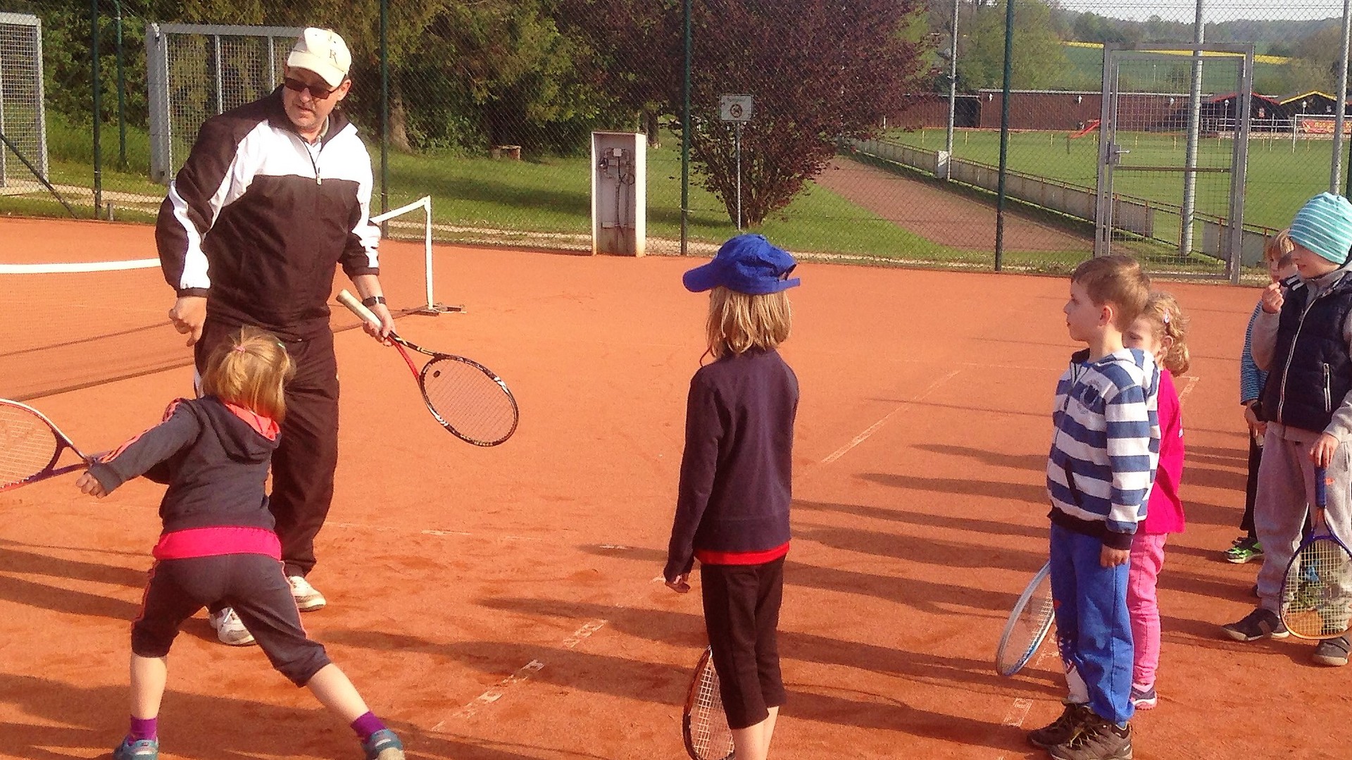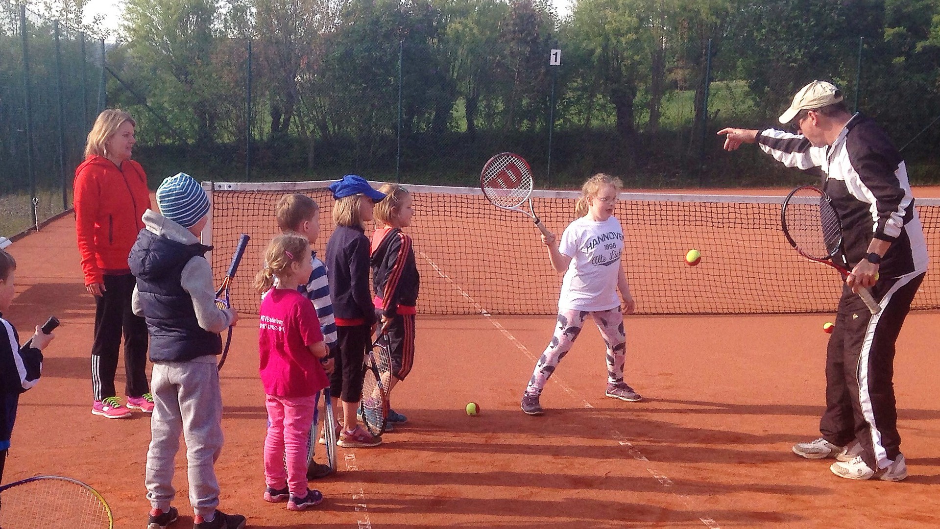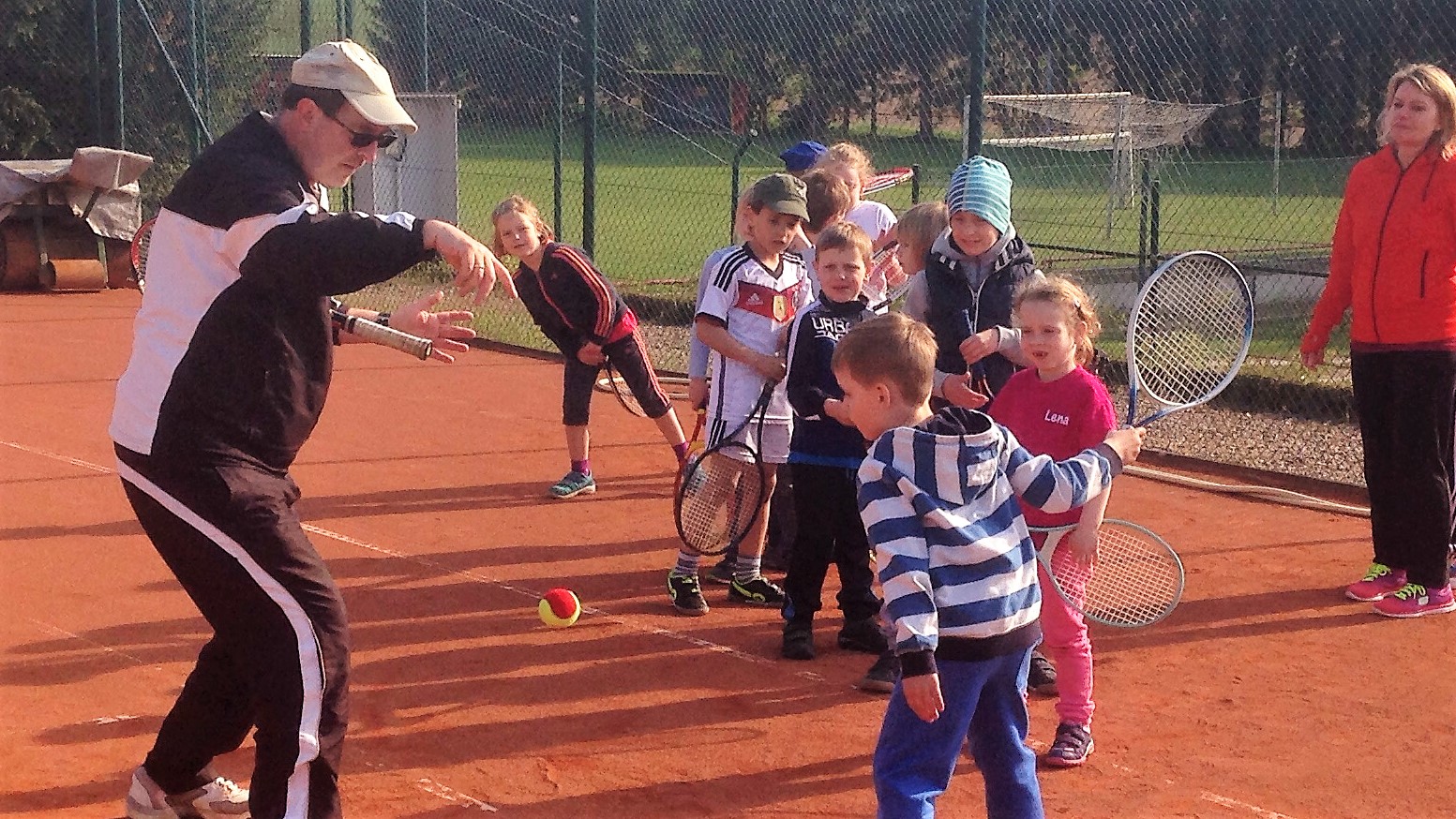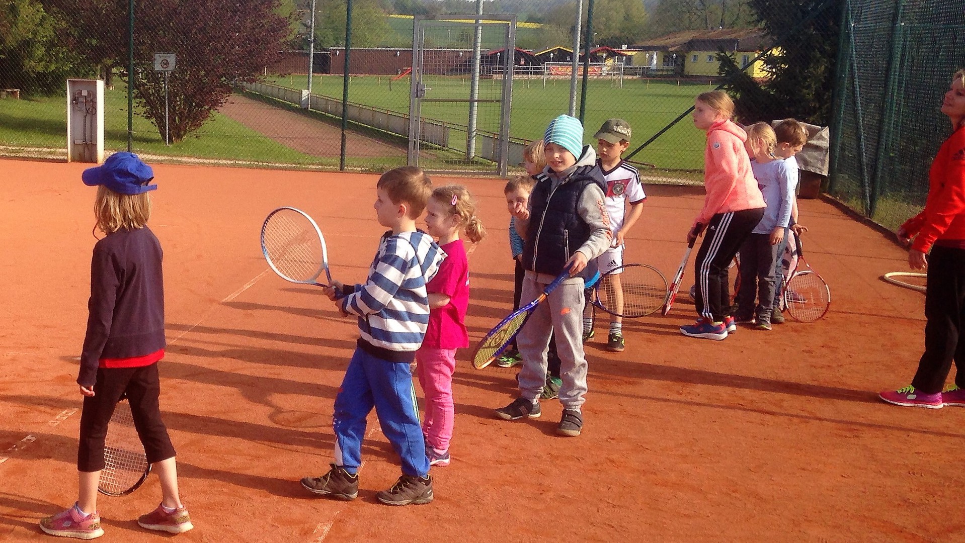 Mit so vielen Kids haben wir kaum gerechnet: Dietlind Emmel und Ulrike Rohr organisierten den heutigen Tag. Mama und Papa begleiteten ihre Sprößlinge auf den Tennisplatz. Ab dem 4. Lebensjahr waren die Kinder mit Begeisterung dabei. Trainer Bernd mit Helferin Ulrike und Fenja Rohr zeigten spielerisch die nötigen Bewegungsabläufe, sodass der Tennisball getroffen wird.