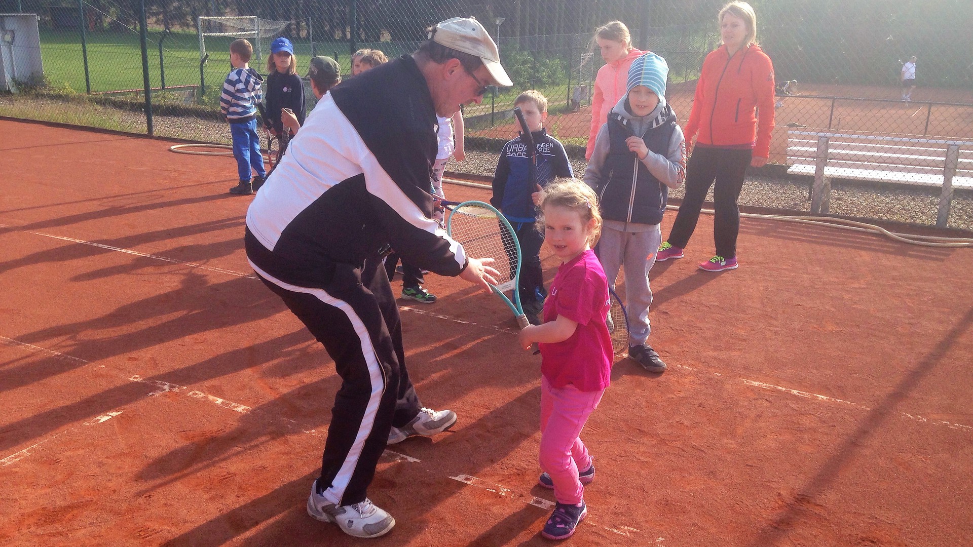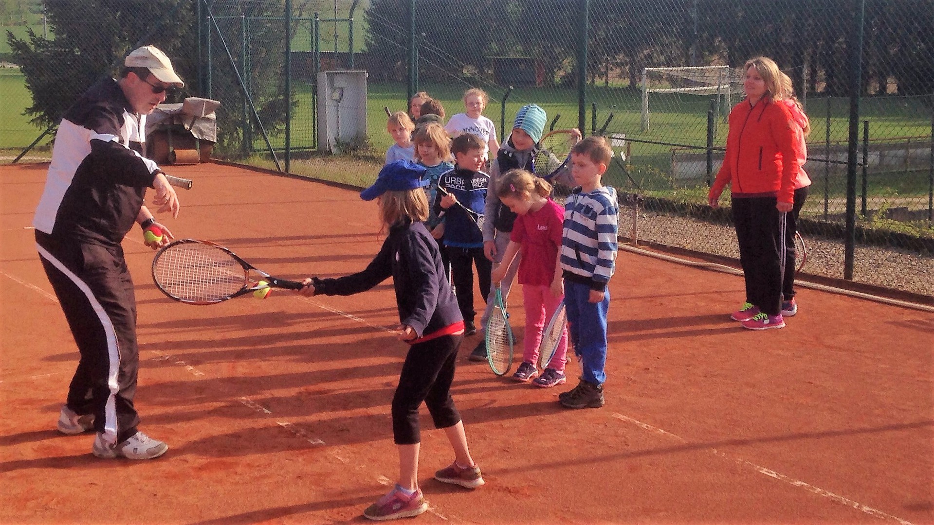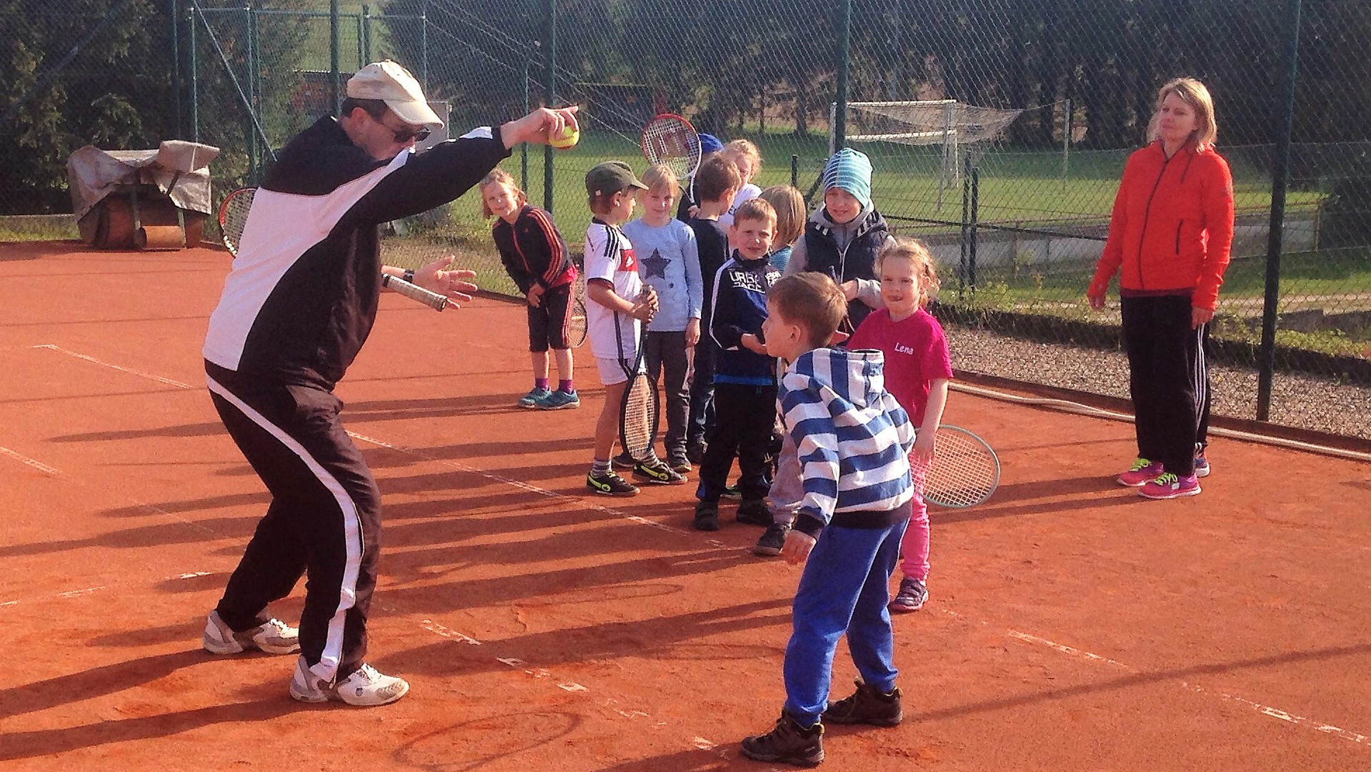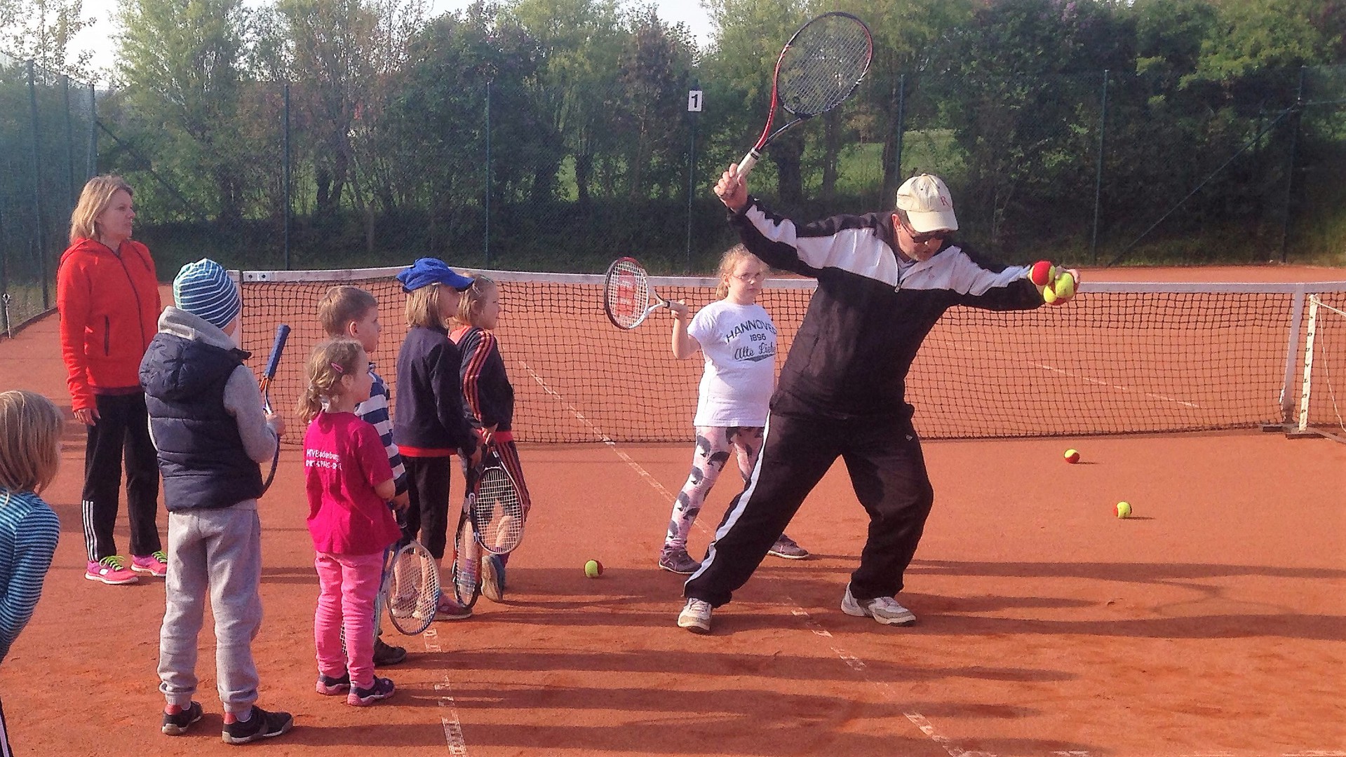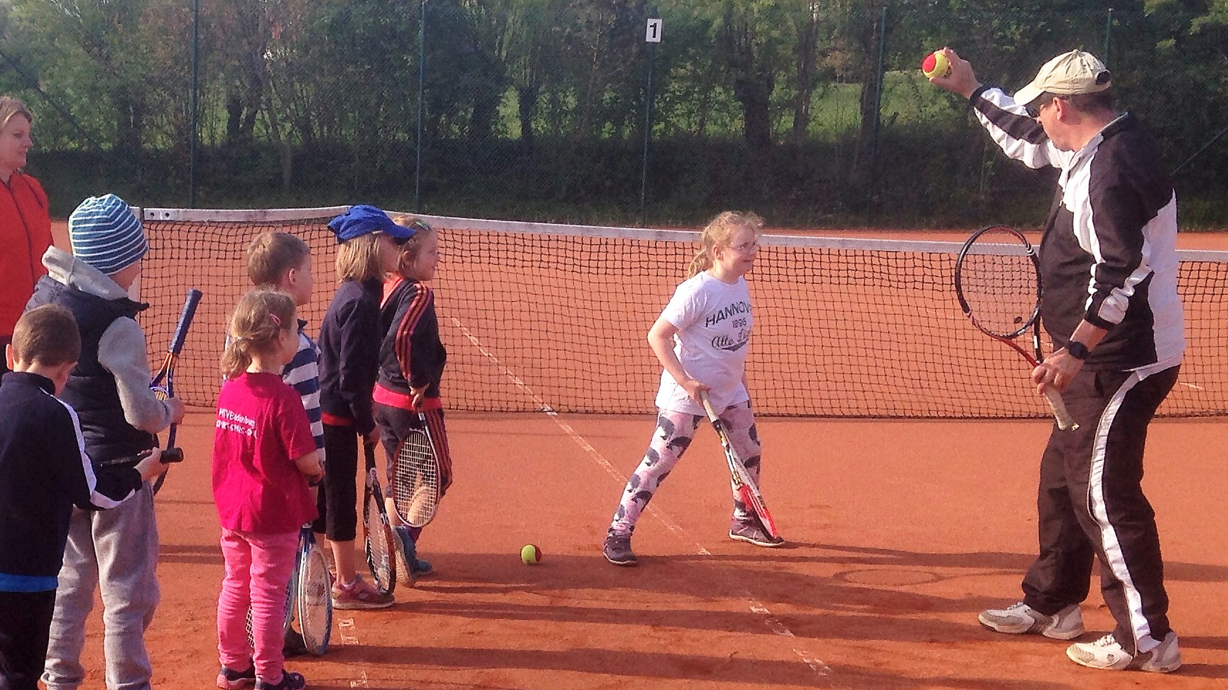 Mit so vielen Kids haben wir kaum gerechnet: Dietlind Emmel und Ulrike Rohr organisierten den heutigen Tag. Mama und Papa begleiteten ihre Sprößlinge auf den Tennisplatz. Ab dem 4. Lebensjahr waren die Kinder mit Begeisterung dabei. Trainer Bernd mit Helferin Ulrike und Fenja Rohr zeigten spielerisch die nötigen Bewegungsabläufe, sodass der Tennisball getroffen wird.