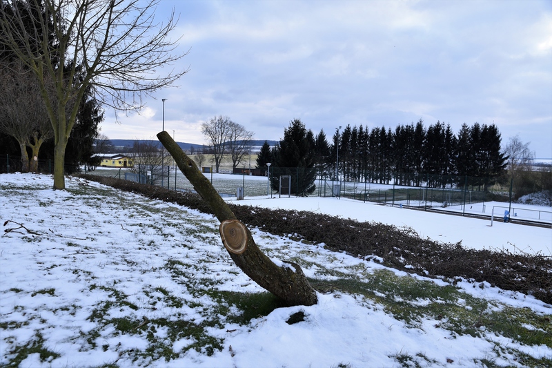 Die Fichten zwischen dem Sportplatz und Platz 3 wurden gefällt.