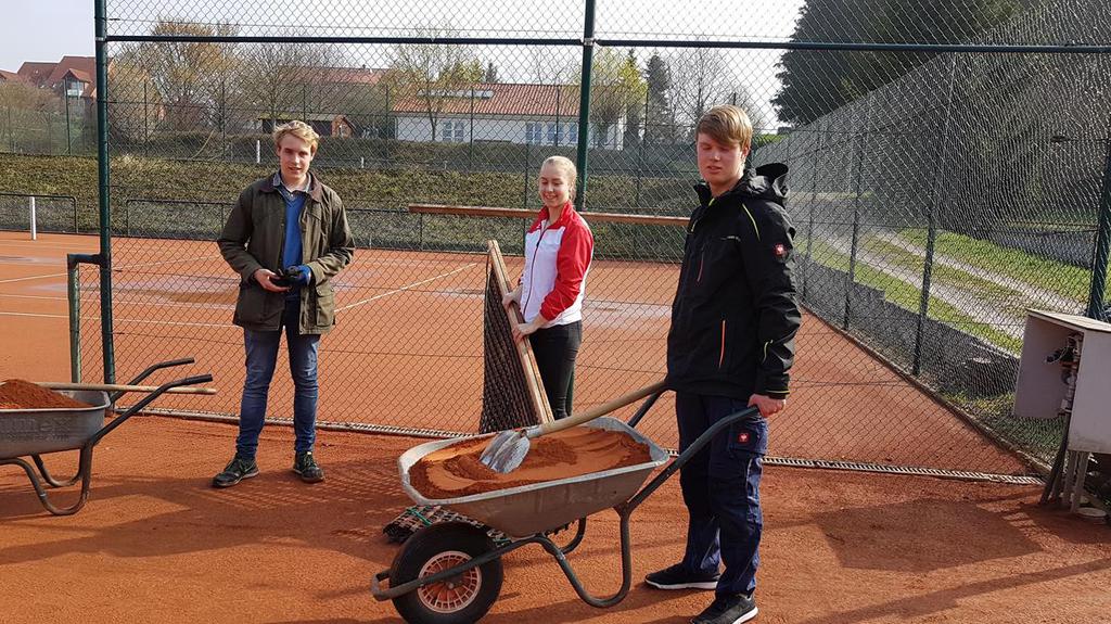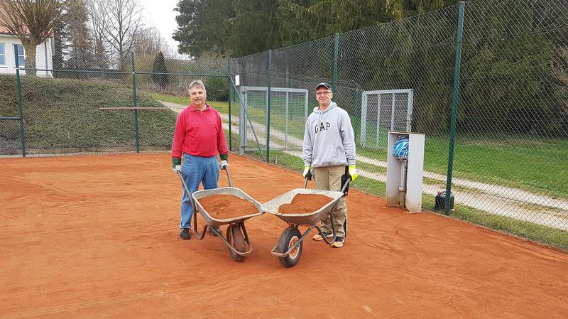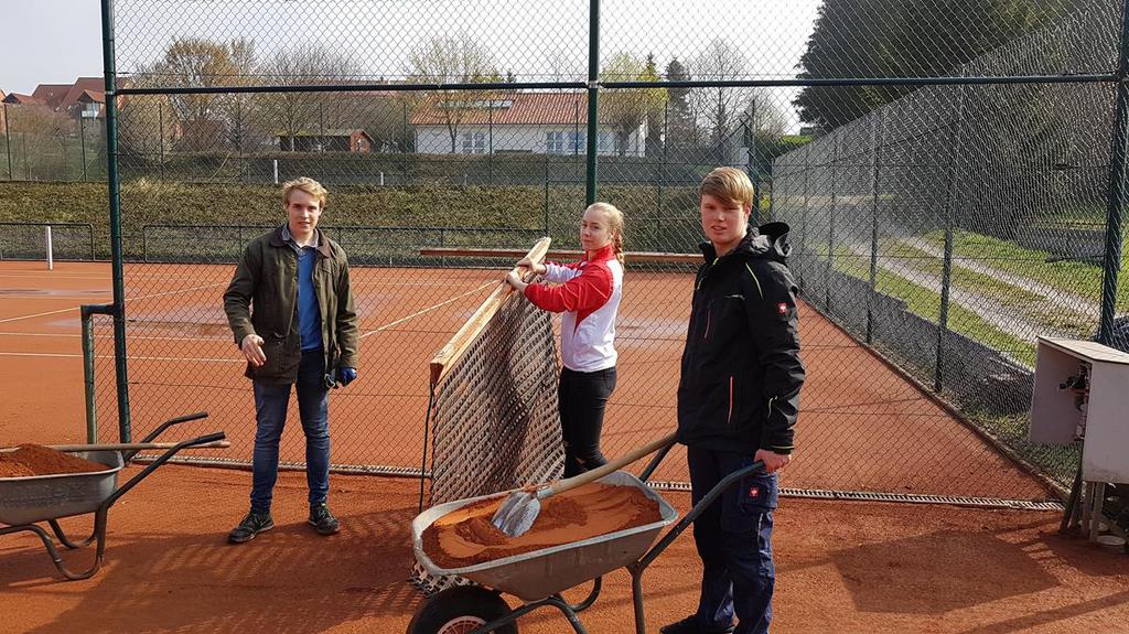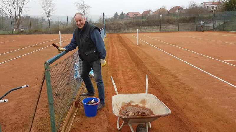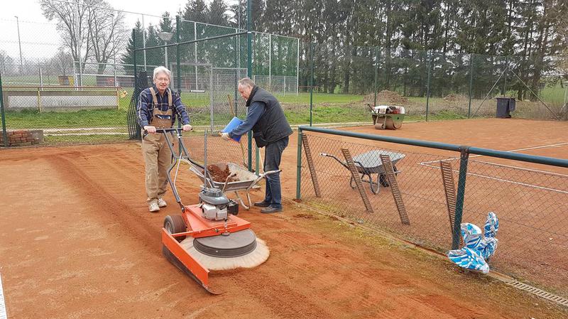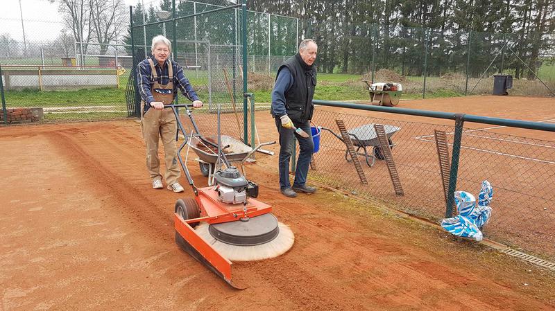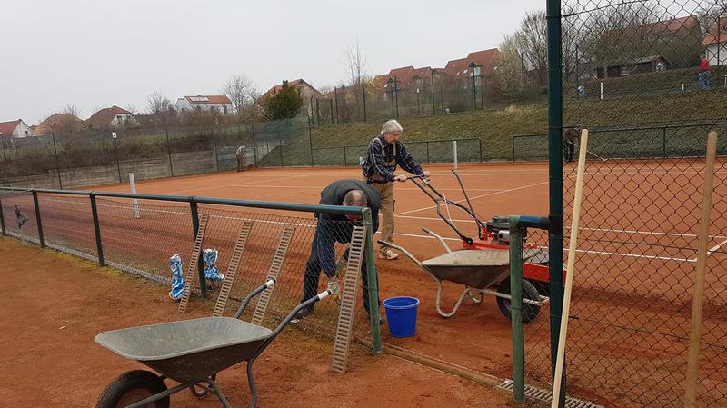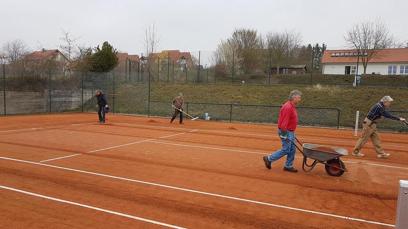 Wir konnten die drei Tennisplätze schon zu 70% aufarbeiten, der alte Sand wurde beseitigt. Der diesjährige schwache Winterfrost hielt die Schäden in Grenzen. An den Linien wurden nur leichte Korrekturen vorgenom-men, die Investitionen in neue Spannlinien im letzten Jahres haben sich ausgezahlt. Einige Sportfreunde aus anderen Sparten beschnitten Bäume und Büsche. Demnächst geht es weiter, sodass die Saison pünktlich Amfang Mai beginnen kann. Hier einige Bilder: