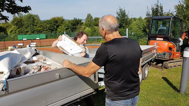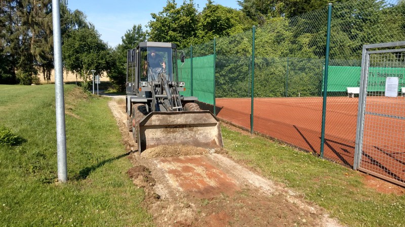 Die angekündigte Baumaßnahme hat begonnen, Helfer der MTV-Tennissparte waren am 18.07.20 fürs "Grobe" zuständig. Hartmut Maushake war mit Fahrzeugen der Fa. Thiemt da, Jens Kalkmann war mit seinem Radlader aktiv. Schaut euch mal die Bilder an, nächste Woche geht es weiter.
