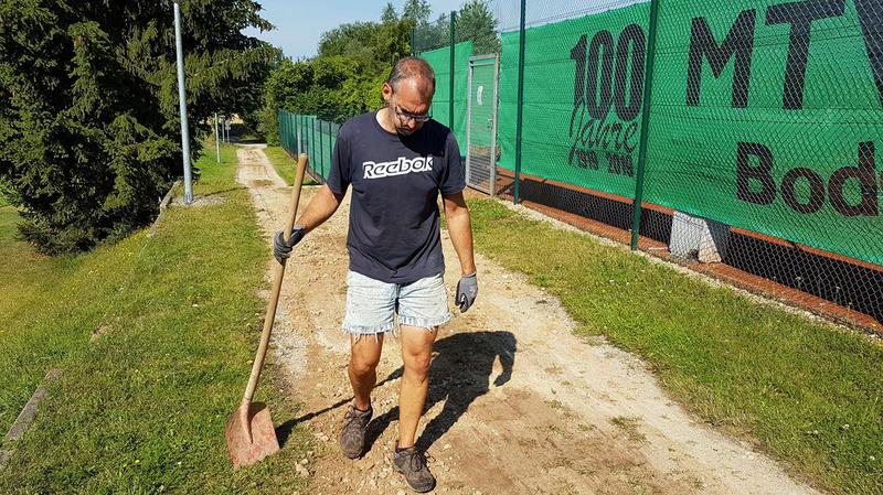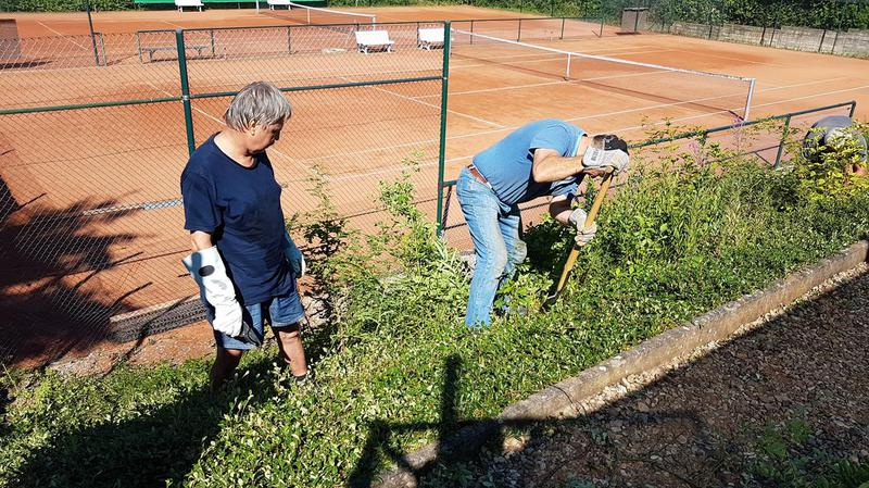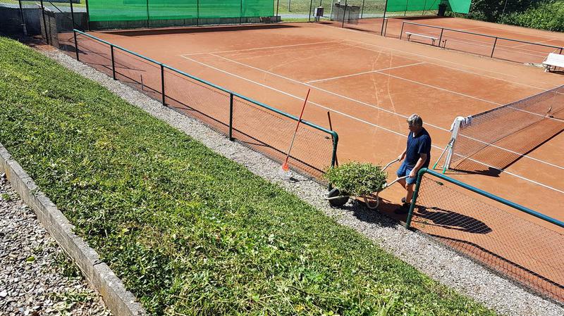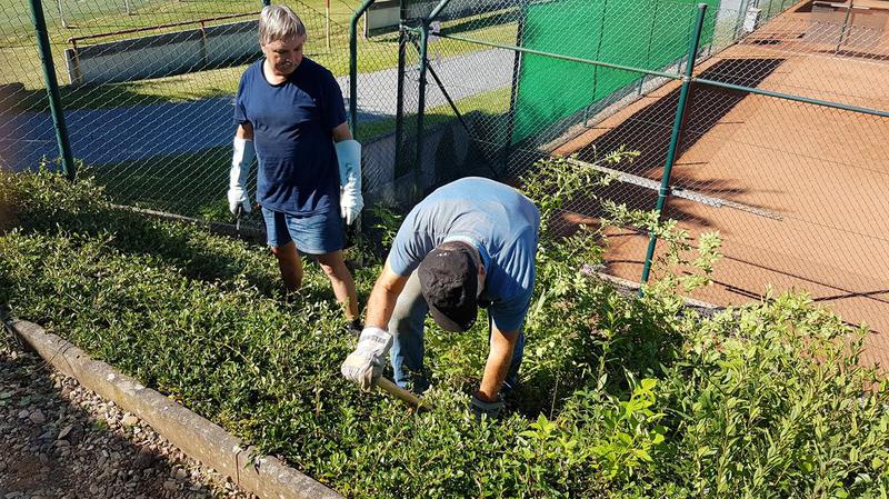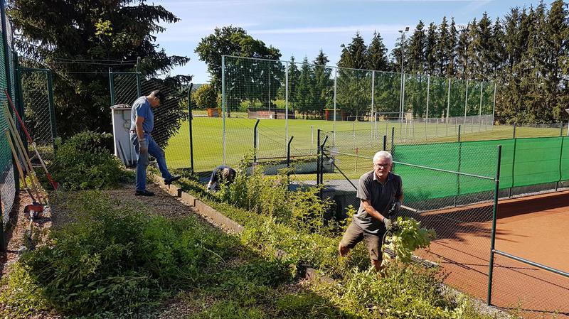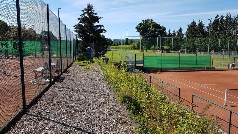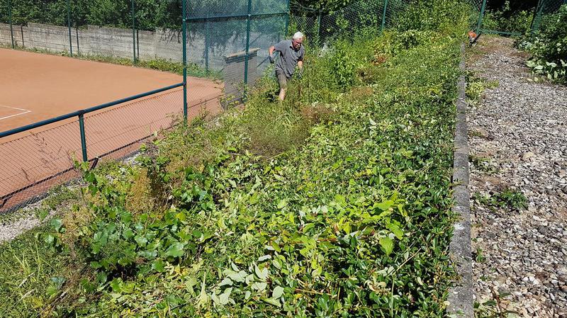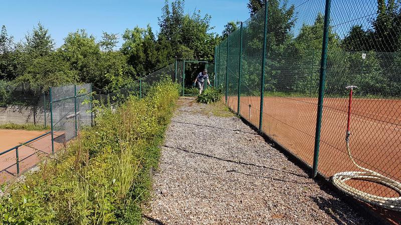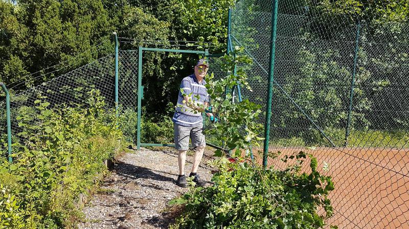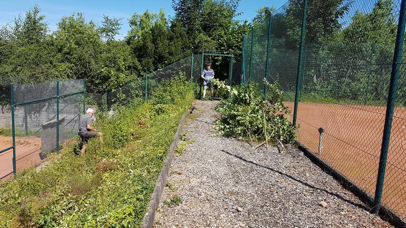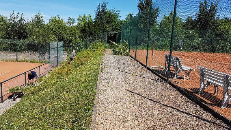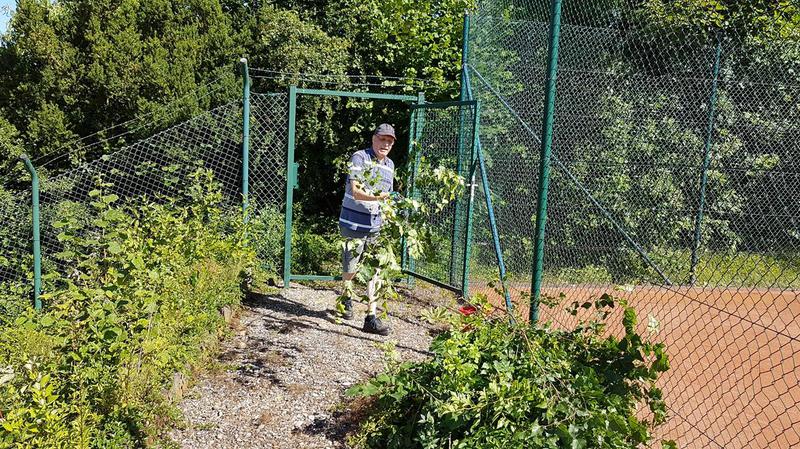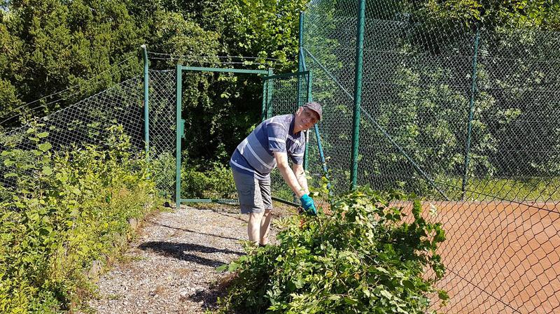 Rund um die Tennisanlage wurde geschnitten, die begrünten Hangschrägen zwischen den Plätzen wurde gestutzt und von "Unkraut" befreit.