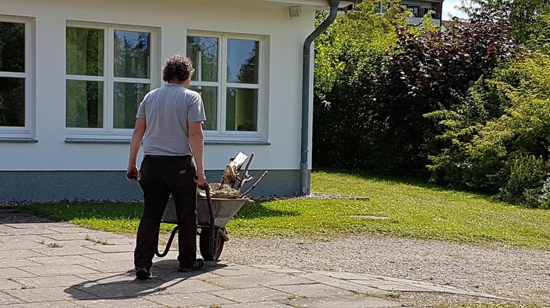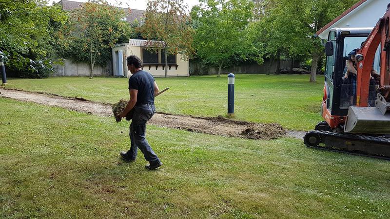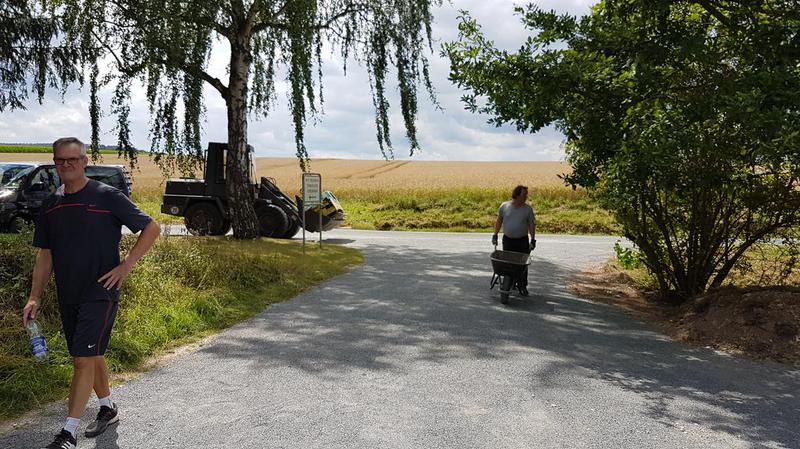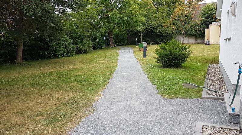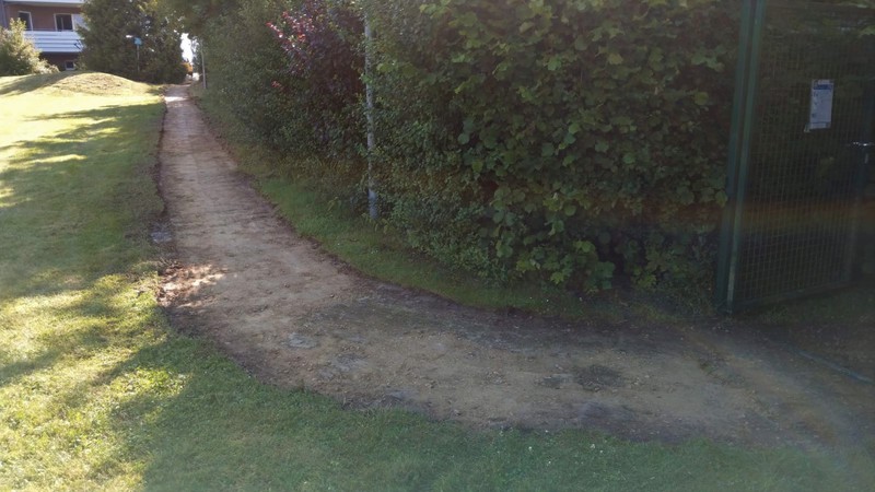 Vor rund 18 Jahren wurde der Fußweg uber den Spielplatz auf unser Gelände angelegt. Die Vegetation hat sich inzwischen ausgebreitet, die Wege sind rutschig geworden, insbesonders in der Herbst- und Winterzeit bereitete der Schutz uns Sorgen. Die Wege werden gereinigt und erhalten eine neu Splitauflage.