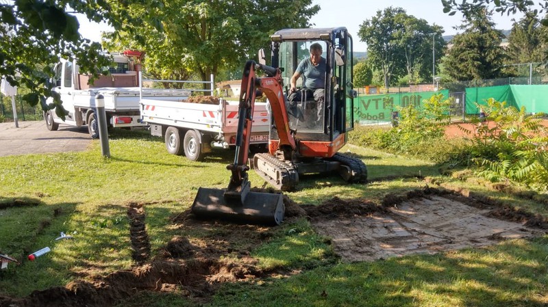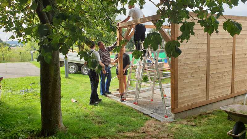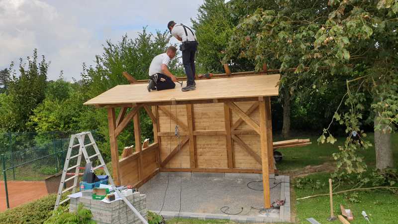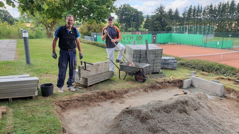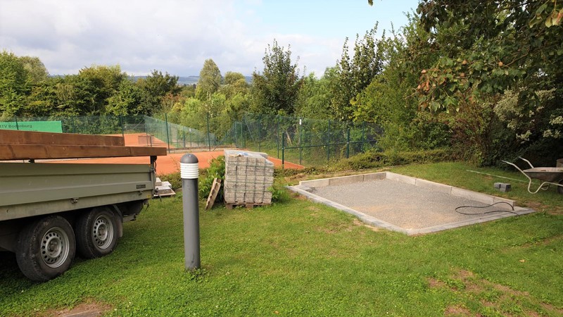 Parallel zu dieser Arbeit wird eine Grillüberdachung gebaut. Mit Material - und Maschineneinsatz ist uns Fa. Thiemt sehr behilflich. Im Vorfeld danken wir schon einmal Stefan Thiemt, Bernhard Rosenbaum und Hartmut Maushake. Die Erdarbeiten beginnen am Samstag, den 18.07.20 um 8.00 Uhr.