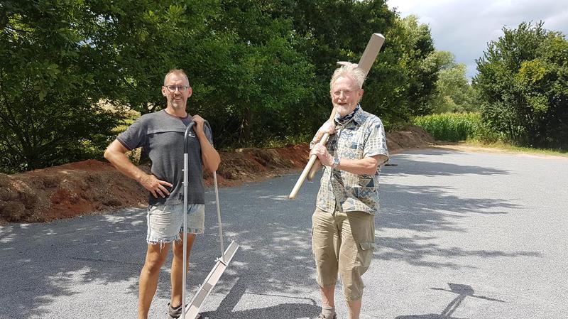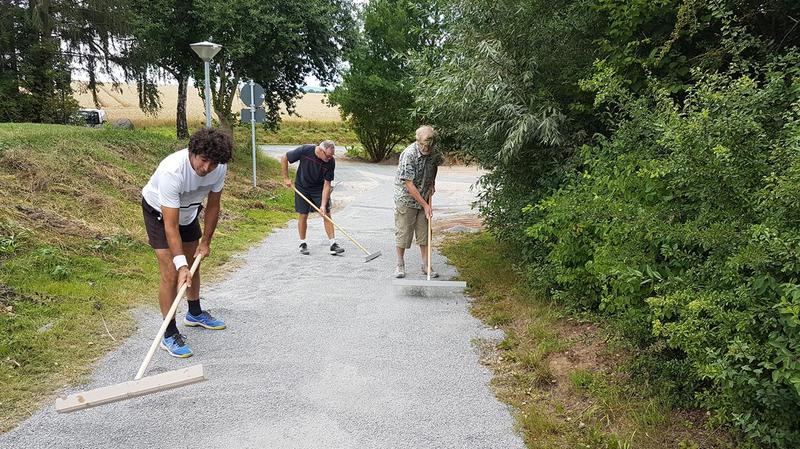 In einer ad hoc Aktion wurde Material beschafft, fleißige Hände brachten den Sand wieder fachgerecht auf.