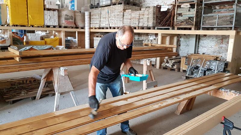 Dast Holz-Ständerwerk wird am Montag, 20. Juni ab 10.00 Uhr in der Halle der Fa. Thiemt gestrichen.