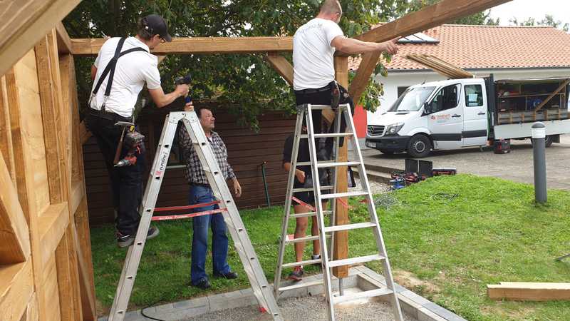 Herzlicher Dank geht in erster Linie an die Firma Thiemt, die sich bei der Umsetzung sehr stark engagiert hat. Zimmermannsmeister Bernhard Rosenbaum mit seiner Mannschaft hat letztlich das Projekt umgesetzt.