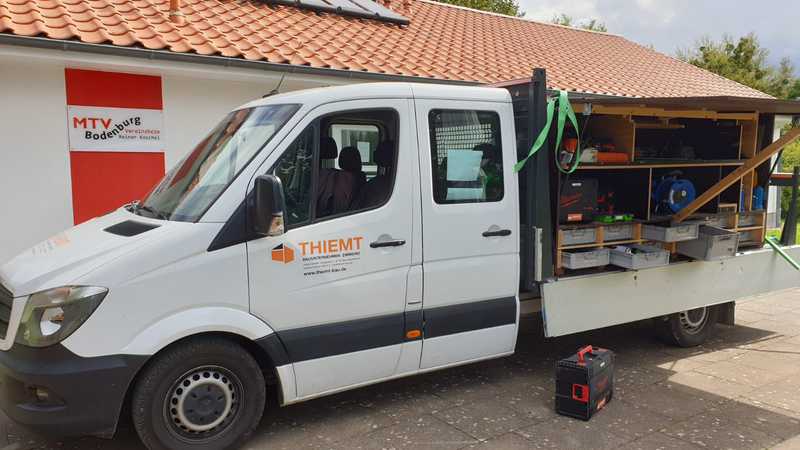 Firma Thiemt ist nicht nur mit Rat sondern auch Tat uns behilflich, trotzdem müssen wir mit Hand anlegen.
