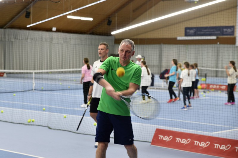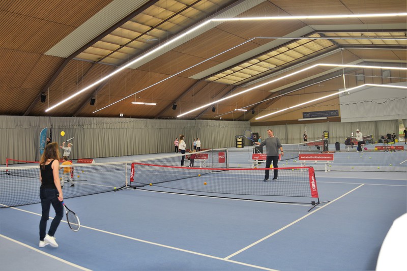 Spiel, Spaß und Tennis war das Motto unseres Familienevents am 11. Febr. 2023. Zu Gast waren wir in der TNB-Tennishalle in Detfurth. Rund 70 Kinder, Jugendliche, Eltern… Oma und Opa waren dabei. Engagierte Trainer und Betreuer waren ab 14.00 Uhr dabei, die Kinder waren einfach begeistert. Spielerisch das Tennisspiel zu erlernen ist das Ziel. Lustig, laut und mit viel Musik hatten alle einen kurzweiligen Nachmittag. Natürlich gab es auch Speisen und Getränke, hierbei half auch die TNB-Küche, einfach toll dass wir auch die obere Etage nutzen durften. Kuchen und Torten kamen von Spendern, ein Teil der Selbstkosten wurde von den Eltern übernommen.