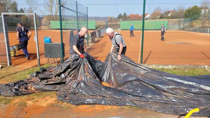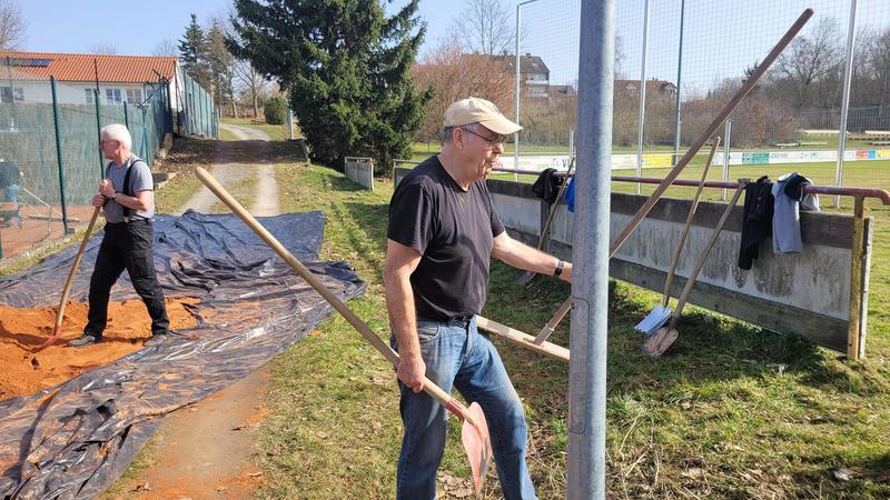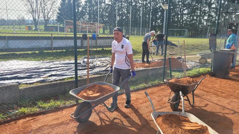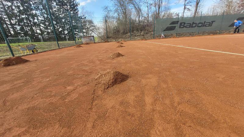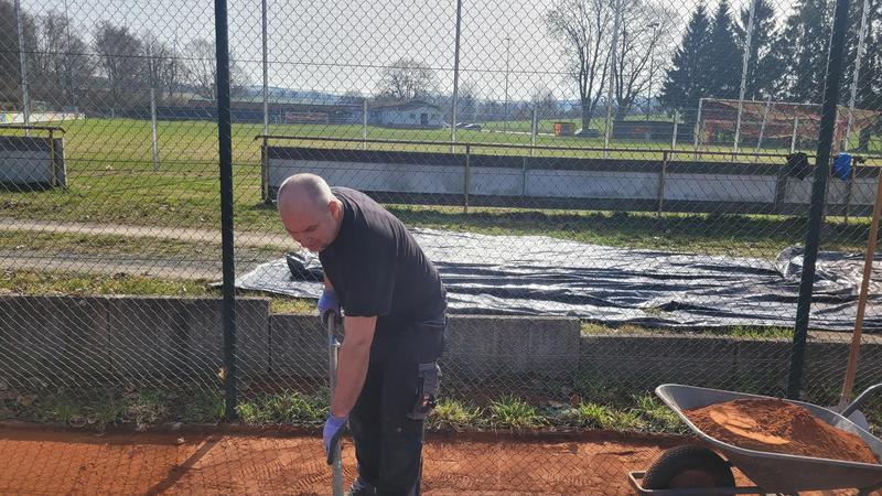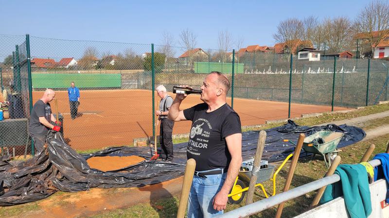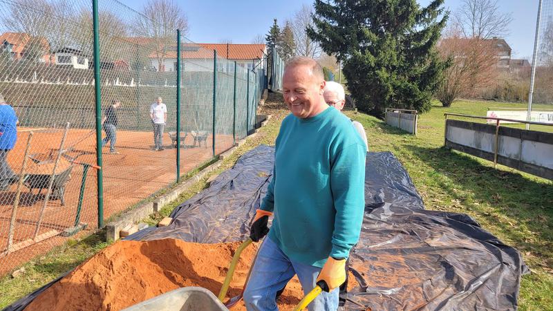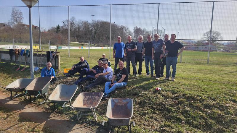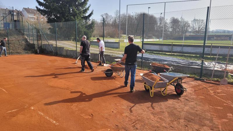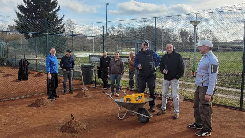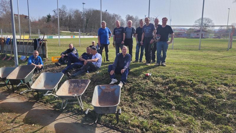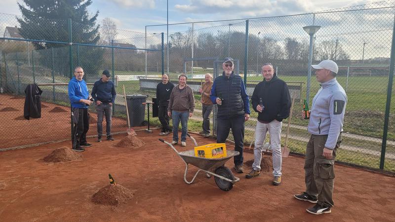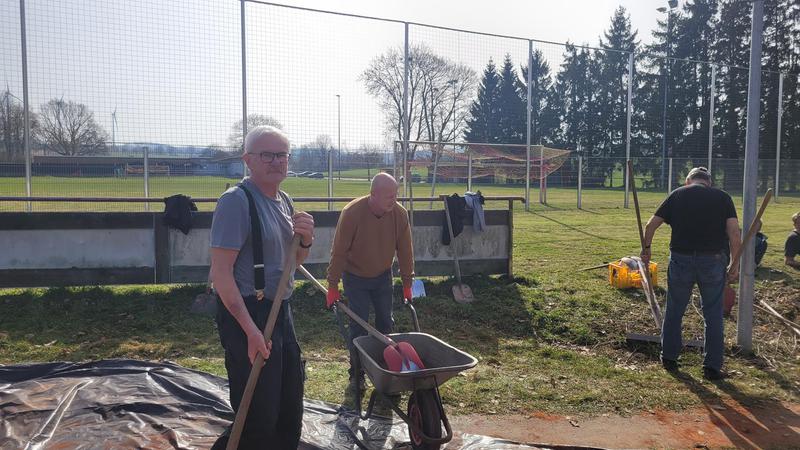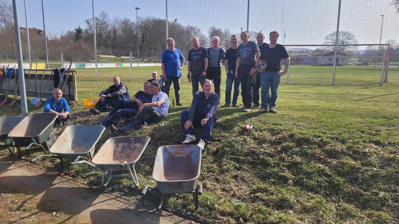 "Nach einem grandiosen 2. Arbeitseinsatz sind alle Plätze eingeworfen, gewalzt und gewässet. So schnell haben wir die Plätze noch nie fertig bekommen! Danke..."
