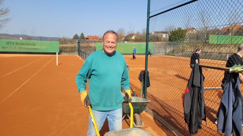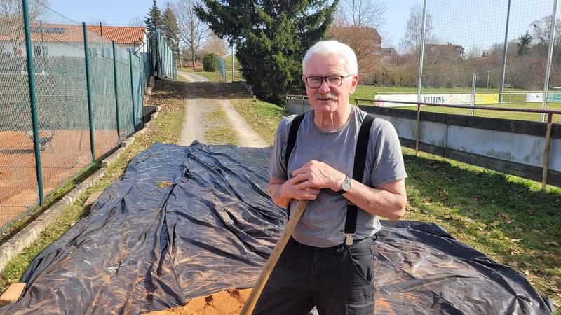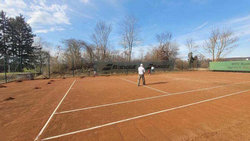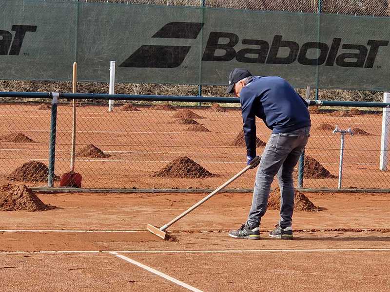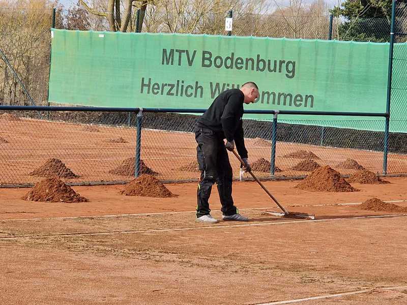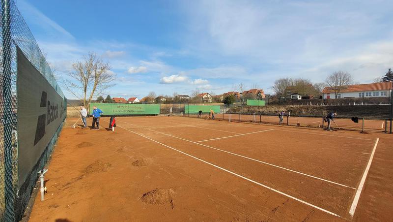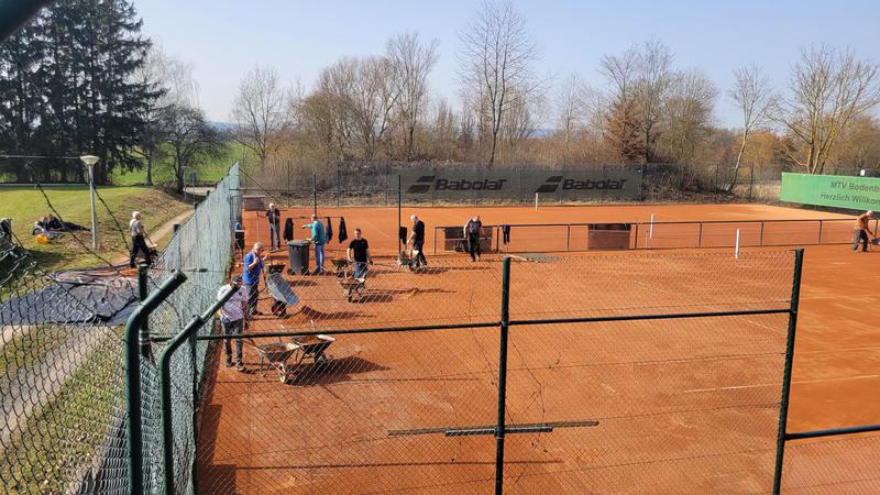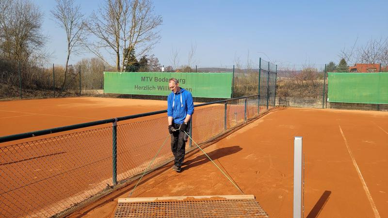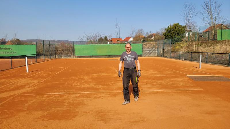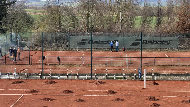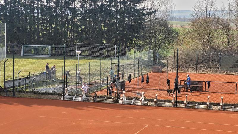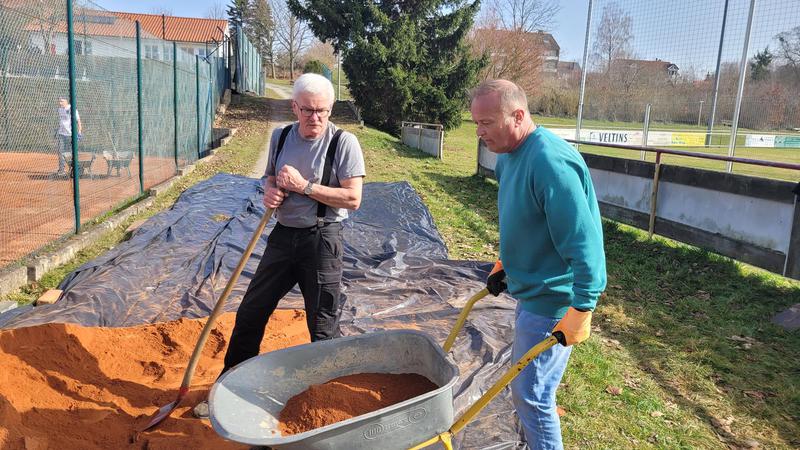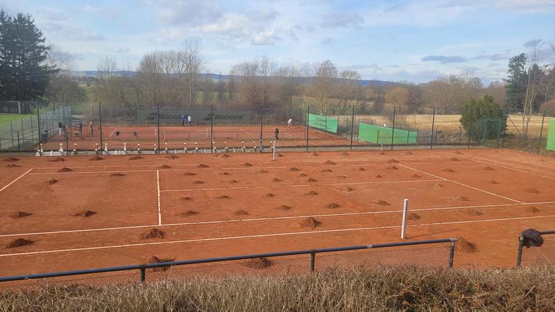 "Nach einem grandiosen 2. Arbeitseinsatz sind alle Plätze eingeworfen, gewalzt und gewässet. So schnell haben wir die Plätze noch nie fertig bekommen! Danke..."