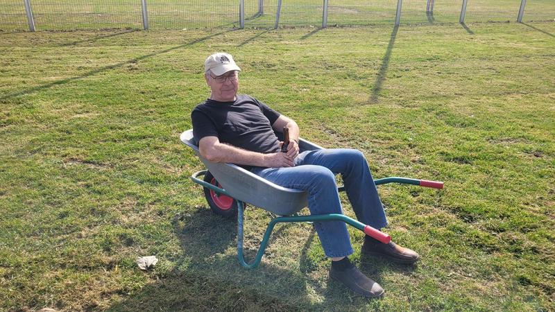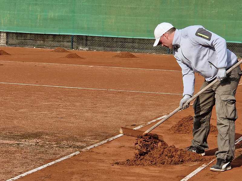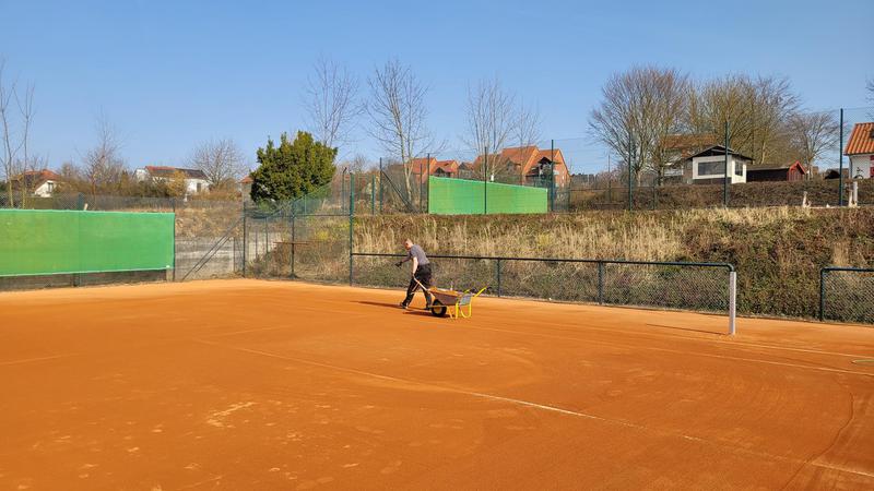 Heute waren die Plätze noch recht feucht, die schweren Schubkarrenreifen hätten den Platz beschädigt.