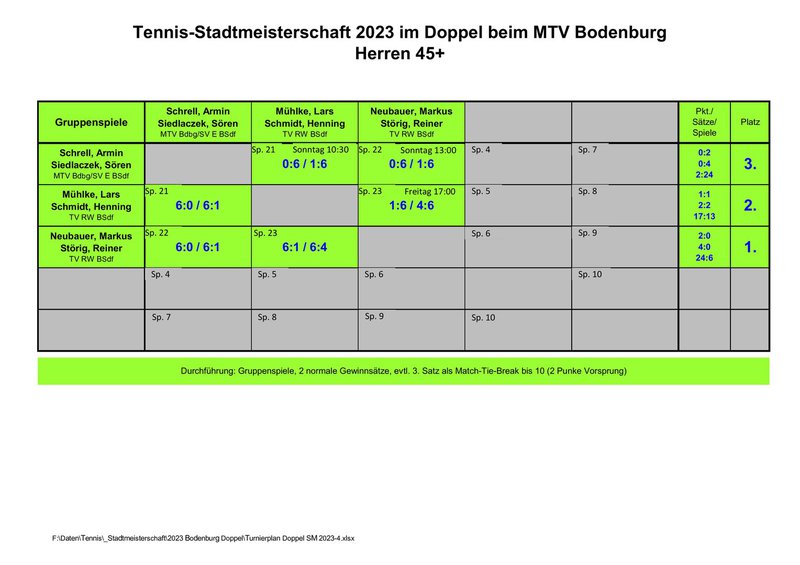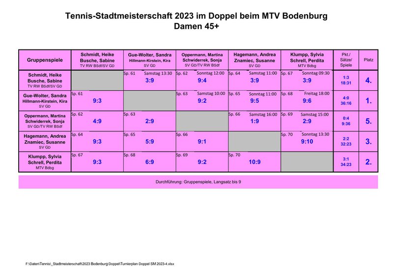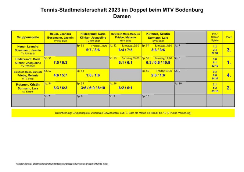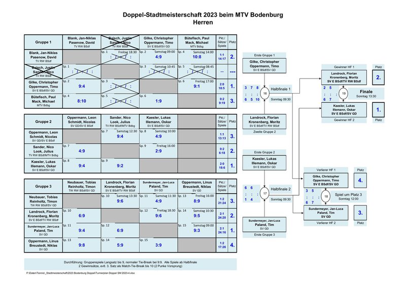 Hier die Ergebnisse der Stadtmeisterschaft 2023